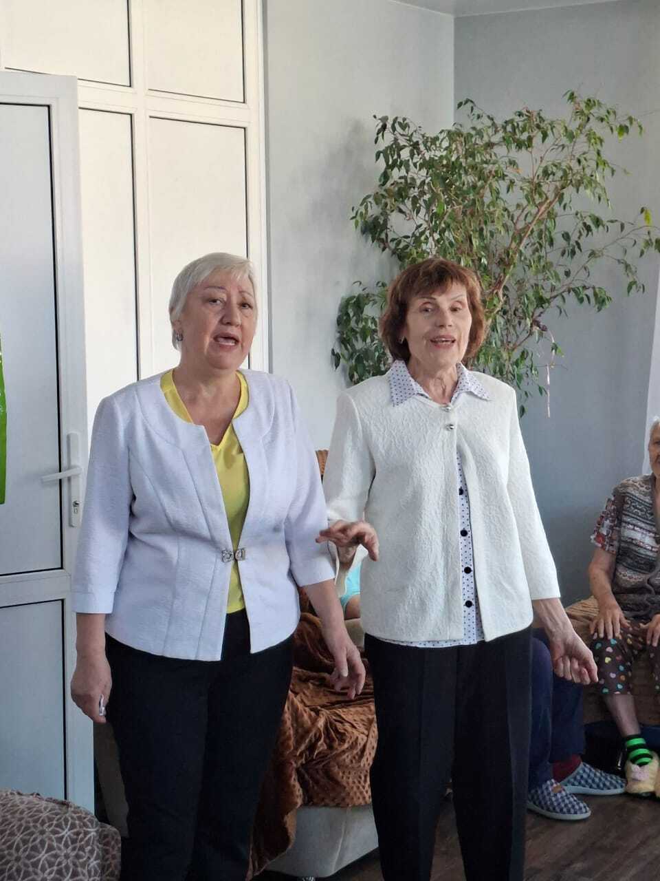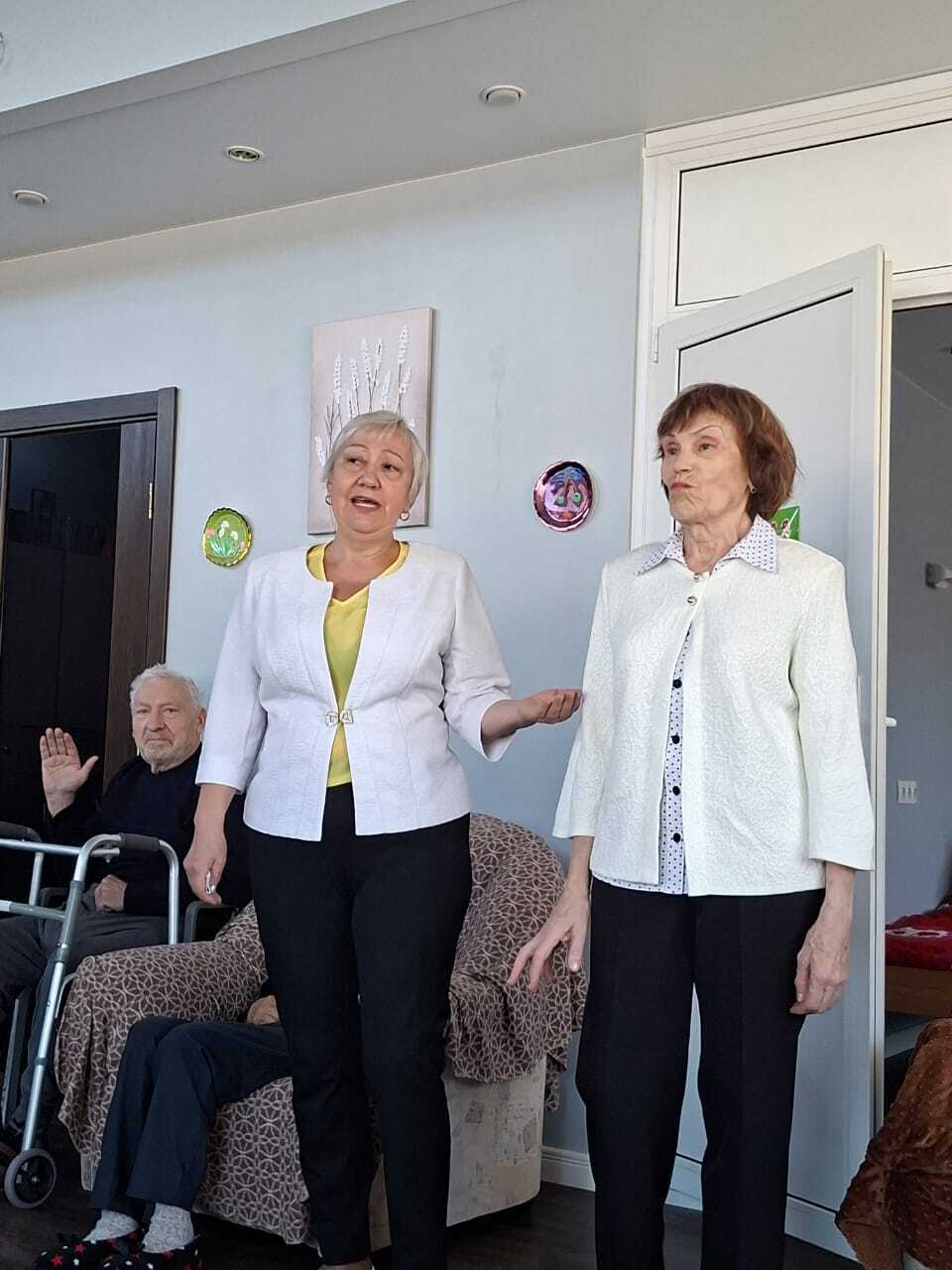 Руководитель народного хора "Русская песня" Нина Штыкина и солистка коллектива Светлана Надьярная выступили с концертной программой "Прекрасны осени мотивы" в пансионате для пожилых людей "Мирра".