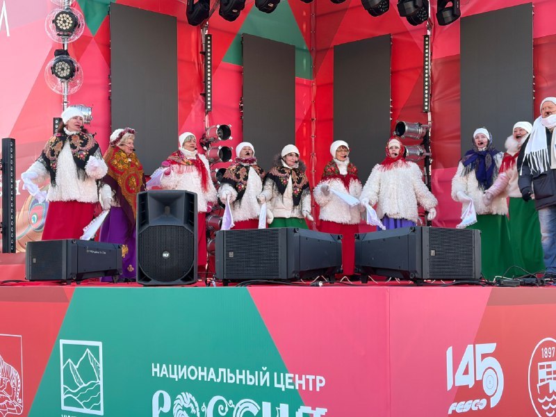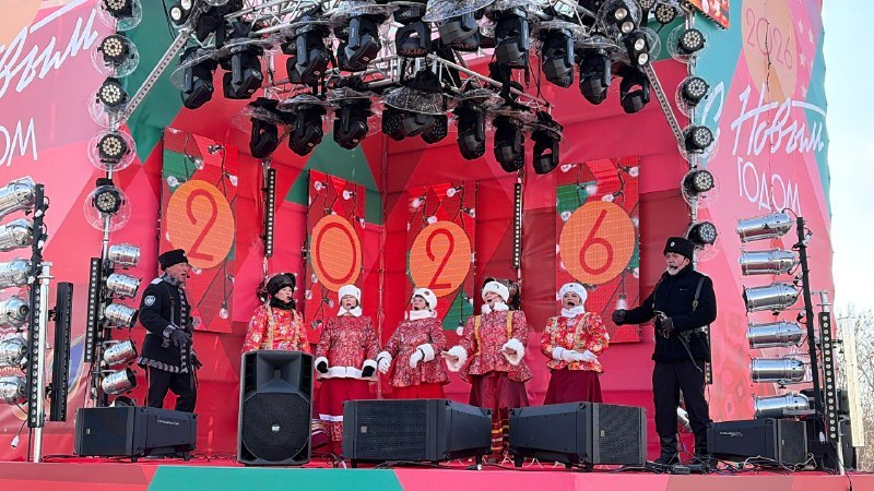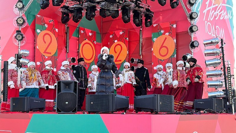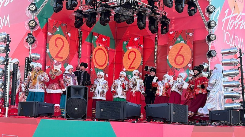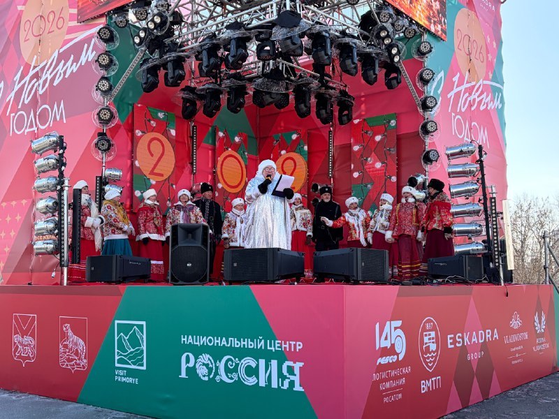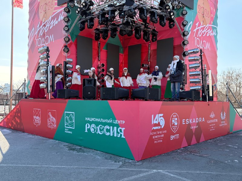 Наступление Нового 2026 года творческие коллективы Дома культуры "Традиции и современность" - народный хор "Улыбка", народный хор "Русская песня", вокальные ансамбли "Казачья вольница" и "Русская душа" - отметили 1 января участием в праздничной концертной программе на Центральной площади Владивостока.